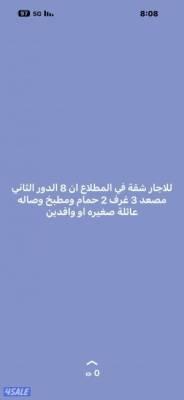 للاجار شقة 3 غرف وصالة و2 حمام ومطبخ الدور الثاني عايلة صغيرة