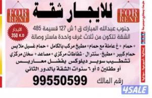 السعر: 350 نشر منذ 3 يوم و 7 ساعة للايجار شقه جنوب عبدالله المبارك الدور الثالث
