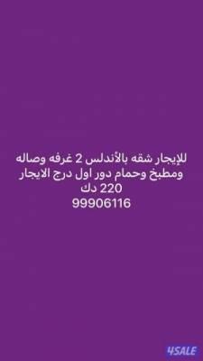 السعر: 220 نشر منذ 2 ساعة و 15 دقيقة للإيجار شقه بالأندلس 2 غرفه وصاله ومطبخ وحمام دور اول درج الايجار 220 دك