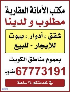 ٤غرف كبار وصاله وصالون ومطبخ و٥ حمام وغرفة للخادمه مساحات كبيره على الشارع العام تشطيب ديلوكس جديده للايجار ٦٠٠دك يوجد لدينا شقق آخرا في مناطق الكويت