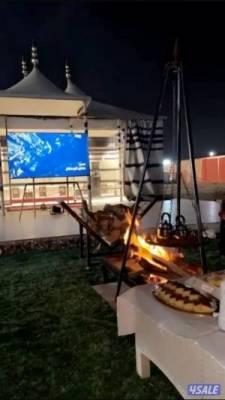 مكونه من ٣ غرف نوم و٣ حمامات وصاله كبيره ودوانيه وليوان مغطى وآخر مكشوف ومطبخ كبير مجهز بالكامل وغرفة عاملات مع حمامها وخيمه ملكيه للتواصل واتساب (تسعه سبعه واحد سبعه واحد واحد سته واحد