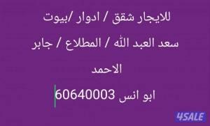 للايجار شقق وادوار وقسايم في سعد العبد الله / المطلاع/ جابر