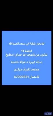 للايجار شقة في سعدالعبدالله قطعه11