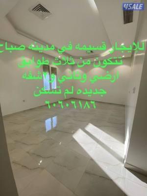 للإيجار قسيمه ثلاث أدوار في مدينه صباح بها شقق ومصعد جديده لم تسكن