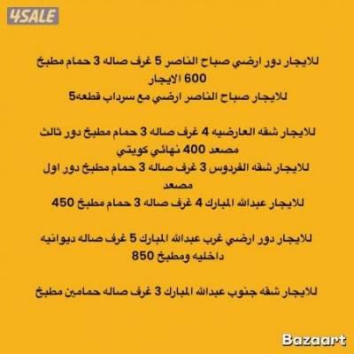 للايجار دور ارضي صباح الناصر وغرب عبدالله وشقه العارضيه والفردوس وعبد