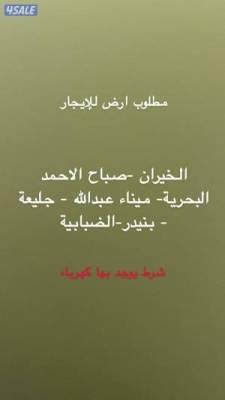نشر منذ 1 شهر و 17 يوم مطلوب ارض في للإيجار في الخيران / صباح الاحمد البحرية / بنيدر/ جليعة / ميناء عبدالله / الضباعية