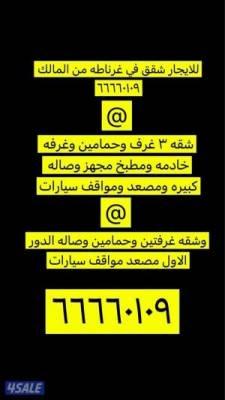 للايجار شقق في غرناطه من المالك مباشر يوجد ٣ غرف وحمامين وصاله كبيره
