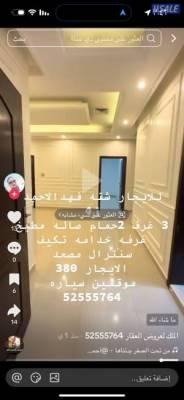 3 غرف 3 حمام صاله مطبخ غرفه للخادمه تكييف سنترال مصعد الايجار 350 للايجار شقه فهدالاحمد ق4 3 غرف 2 حمام صاله مطبخ غرفه للخادمه تكييف سنترال مصعد الايجار 380 |