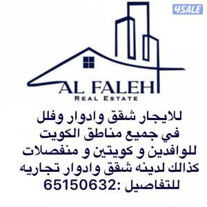 للايجار دور ارضي منطقة جنوب خيطان مكون من ٥ غرف نوم. ٤ منهم ماستر وصاله لها باب خارجي وداخلي وحوش خارجي وحوش داخلي وسط الدور ومطبخ وغرفة خ ا د بحمامها و غرفة غسيل ٧٥٠ دينار مطلوب عايله كويتيه . —————————————— للايجار منطقة الرميثيه ١١ دور ارضي مكون من : دوانيه لها باب خارجي وداخلي صاله مساحه واسعه مطبخ مع غرفة خ ا د بحمامها ٥ غرف نوم منهم ٣ ماستر وثنين بينهم حمام ٣ مواقف سيارات ثنين منهم مظله . الايجار ٩٠٠. ——————————————— للايجار منطقة الرميثيه شقه ٣ غرف نوم منهم غرفه ماستر وغرفتين يخدمهم حمام كذالك صاله مساحه واسعه و مطبخ مع غرفة خ ا د الايجار ٥٥٠ . مصفط سيارات واحد ويوجد براحه جدام البنايه . ——————————————— للايجار منطقك الرميثيه شقه ٣ غرف نوم منهم ماستر بالسرداب مع حوش ساقط وصاله مساحه واسعه ومطبخ وغرفة خ ا د موقفين سيارات . الايجار ٥٠٠ +تأمين نص ايجار . ——————————————— للايجار شقه في منطقة عبدالله مبارك. ٣ غرف منهم غرفه ماستر الصاله واسعه جداا وغرفة خ ا د بالمطبخ الايجار ٣٥٠ مطلوب عايله صغيره او معاريس كويتين . ——————————————— للايجار منطقة جنوب عبدالله مبارك شقه الوحيده بدور مع روف سطح صغير الشقه مكونه من ٣ غرف منهم ماستر وصاله ومطبخ وغرفة خ ا د . مصفطين سيارات الايجار ٣٥٠ اول ساكن مطلوب عايله صغيره او مطلقه طفل او طفلين فقط —————————————— للايجار منطقة الزهراء شقه مكونه من : غرفتين منهم ماستر واصاله و مطبخ وروف سطح خارجي صغير الايجار :٣٥٠ الفالح العقاريه .