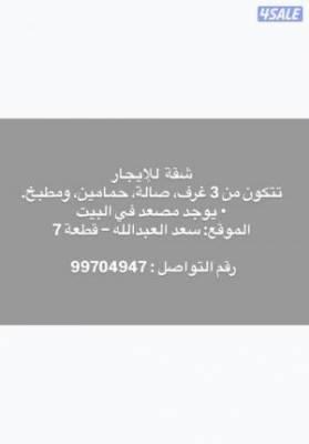 شقة للايجار في سعد العبداللة قطعة 7