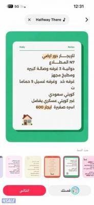 السعر: 600 نشر منذ 11 ساعة و 16 دقيقة للإيجـــــــار دور ارضــي المـطــــــلاع N7