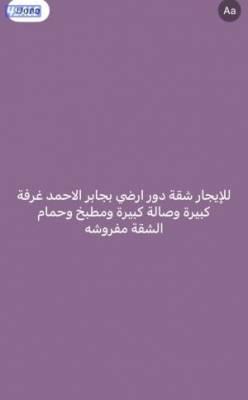 شقة دور ارضي بجابر الاحمد غرفة وصالة ومطبخ وحمام
