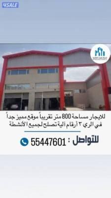 مساحة 800 متر موقع مميز جداً في الري مساحة 800 متر موقع مميز في الشويخ مخزن 1300 متر في الجهراء جميع ما ذكر يصلح لجميع الأنشطة ان لم يكن ما ذكر أعلاه مناسباً لك نقوم بتوفير احتياجك رتويت للخدمات العقارية |