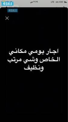 السعر: 50 نشر منذ 1 شهر و 16 يوم فقط شخصين للحجز ممنوع الحفلات والازعاج مجمع سكني راقي شقق تمليك صباح السالم يومي ٥٠ ٦ ساعات / ٧٠ دينار مدة ١٢ ساعة / يوم كامل ٢٤ ساعه ١٠٠ دينار /اسبوع كامل ٥٠٠ دينار فقط بكج عرض خاص اهم شي عندي التعامل الراقي مكاني الخاص( هدوء تام) من المالك مباشرة وقعدة هاديه و اجواء رومانسية و شموع و هدوء تام و راقي حيل وممنوع الاغاني منعاً للأحراج اهم شي ناس راقيه بدون مشاكل والحفاظ على النظافة وتسلم المكان نظيف ويوجد جميع مستلزمات الشيشة ركن خاص ومطبخ مجهز بالكامل مع مكينة بوب كورن حديثة وخدمة اشتراك نتفليكس ومتوفر العاب بالصالة لعبة انحش يالذيب مع لعبة كيرم ومكينة قهوة كبسولات وجميع انواع الرد بول والموهيتو ومشروبات الطاقة ومتوفر حمام سباحة برايفت معزول خاص للنساء فقط بالمجمع السكني وتنظيف وتعقيم وتبخير وتعطير الديوانية بشكل يومي الرجاء الحفاظ على نظافة المكان يوجد خصم خاص وعروض للناس الراقية الملتزمة بالنظافة الاتصال24 ساعة