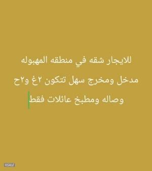 السعر: 260 نشر منذ 1 يوم و 23 ساعة للايجار شقه في منطقه المهبوله مدخل ومخرج سهل تتكون من ٢غ ٢ح صاله ومطبخ لعائلات فقط