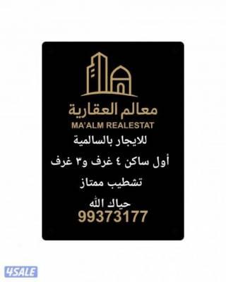 للايجار بالسالمية ٤ غرف و٣ غرف أول ساكن تشطيب ممتاز