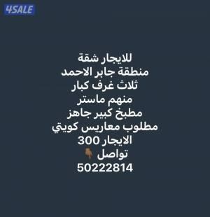 ثلاث غرف كبار منهم ماستر غرفتين بينهم حمام صالة معزوله مطبخ كبير مجهز تكييف مركزي _ شترات _ صخان مركزي موقفين سيارة مظلات منطقة جابر الاحمد قطعه 1 مطلوب معاريس كويتي متوفر فيديو تواصل واتساب او اتصال ☎️
