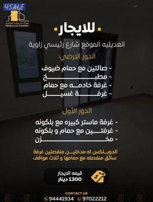 السعر: 1300 نشر منذ 3 ساعة و 6 دقيقة للإيجار دوبلكس فخم في العديليه مكون من 3 غرف ( 1 ماستر + 2 غرفه بينهم حمام ) وصاله ومطبخ وغرفه العامله المنزليه - موقع مميز على الشارع الرئيسي