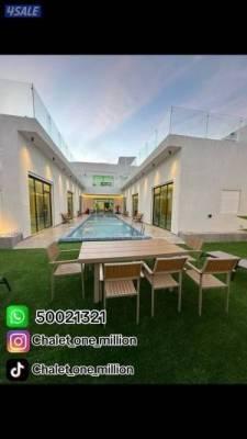 شاليه خاص كامل برايفت غير مقسوم المرحله الاولي طريق 278صف ثاني مقابل الخدمات والمسجد والمطاعم مباشره يتكون من (6 غرف ماستر ) جميعهم اطلاله علي المسبح وصالتين اطلاله علي مسبح وصاله معلقه مطبخ مجهز بالكامل غرفه عاملات ماستر (2 اسره ) مسبح خارجي كبير حديقه +العاب اطفال جلسات خارجيه