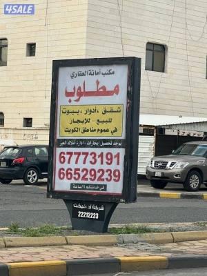 ٣غرف وصاله وصالون ومطبخ و٣حمام وغرفه للخادمه مساحات واسعه تطل علي الشارع ومصفطين للسياره تكيف مركزي ارضيات سيراميك مصعد الاجار٤٥٠ دينار