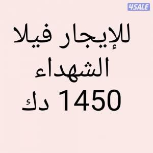 السعر: 1450 نشر منذ 1 ساعة و 41 دقيقة للايجار فيلا في الشهداء قطعة 1 (دورين وملحق)
