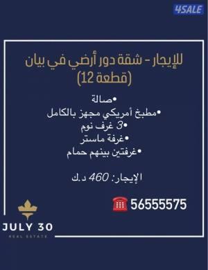 للايجار شقة فخمة بمنطقة بيان قطعة 12 دور ارضي