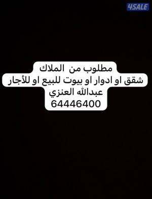 مطلوب شقق او ادوار او بيوت من الملاك