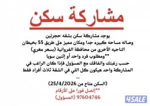 نشر منذ 1 ساعة و 36 دقيقة يوجد مشاركة سكن بشقه حجرتين
