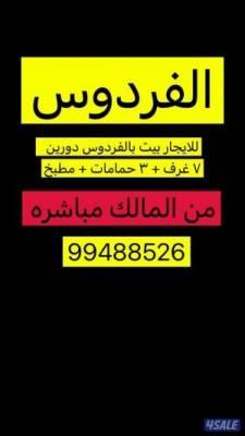 نشر منذ 2 ساعة و 2 دقيقة للايجار بيت دورين الفردوس