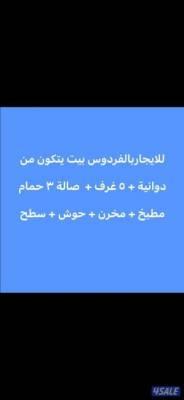 نشر منذ 1 ساعة و 46 دقيقة للايجار بيت في الفردوس يتكون من