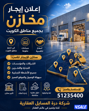 إيجارات الكويت - متوافر مخازن تخزين عام وغذائي بكل مناطق الكويت والاسعار تنافسية